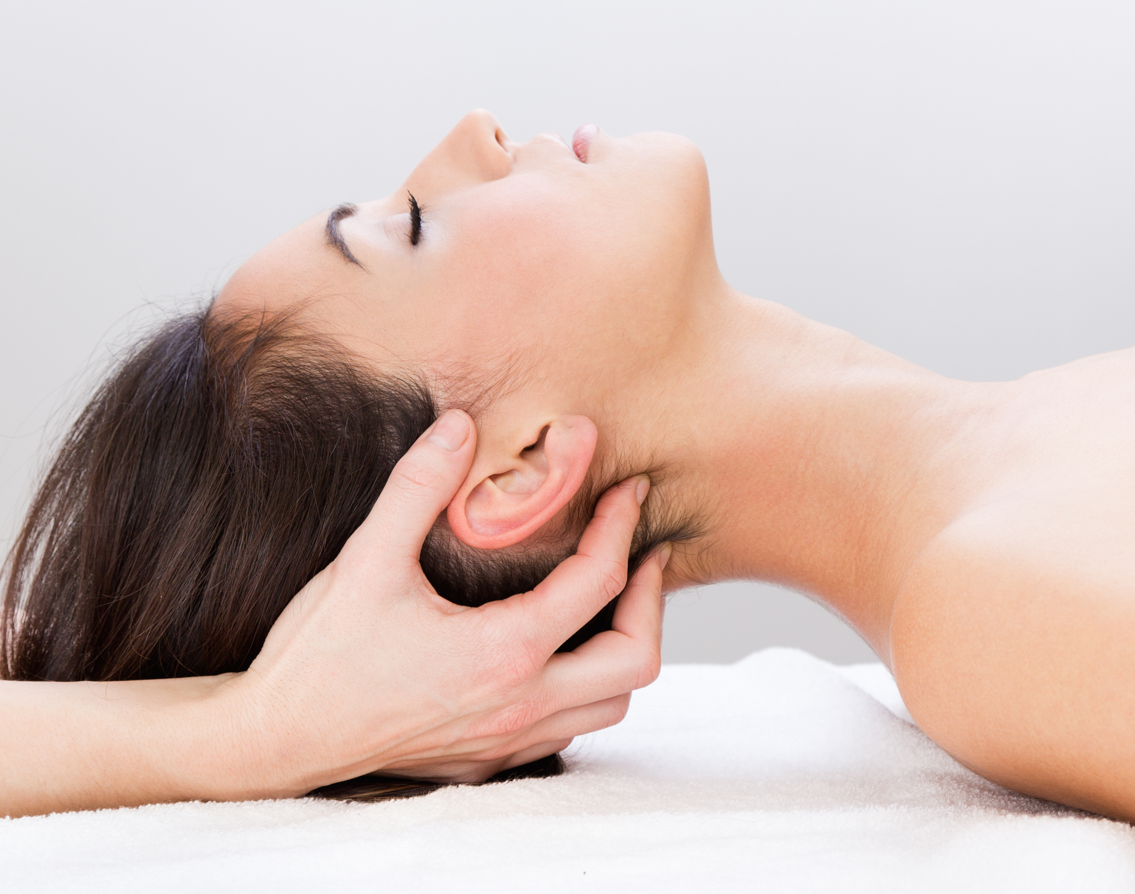 Masaje terapeutico que se enfoca en la cabeza, cuero cabelludo, cara, cuello, hombros y escote.